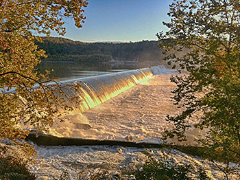 The boy shivers beneath the hot, afternoon sun. His teeth chatter. The boat drifts until the cable is taut then slowly pivots to face upriver. The boy looks out over the stern toward the falls. The river is calm.